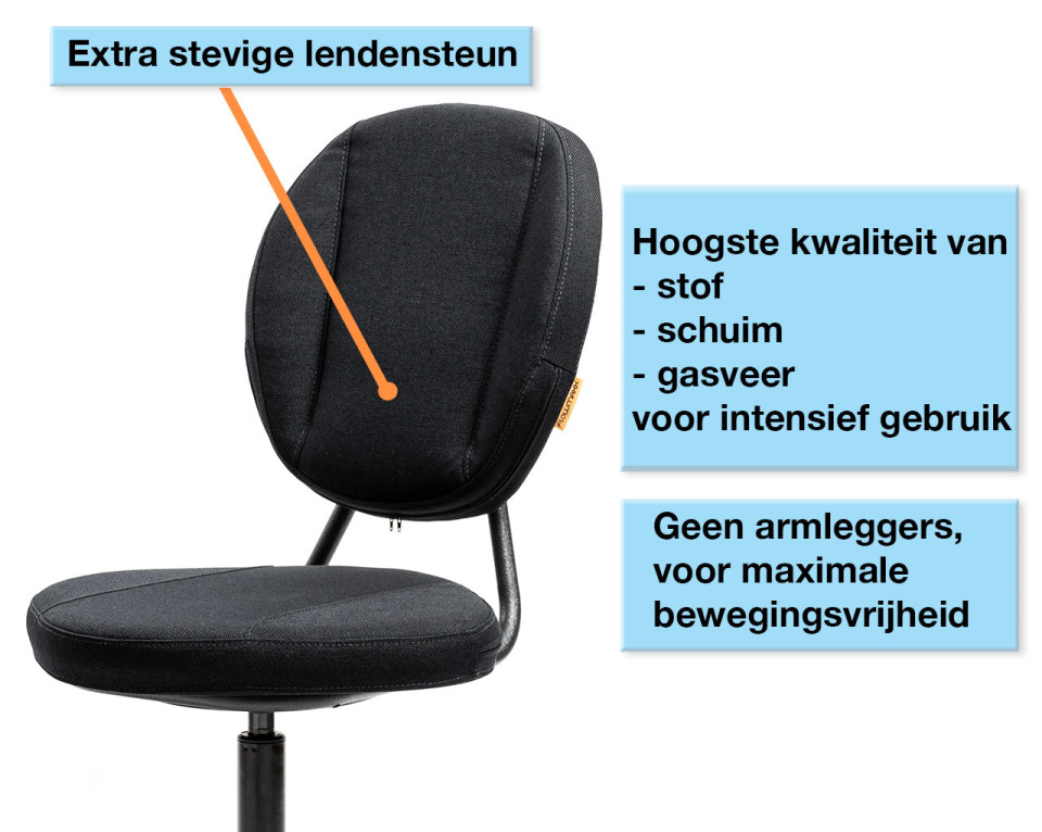 De FLOWMAXX balance chair heeft de volgende unieke eigenschappen: